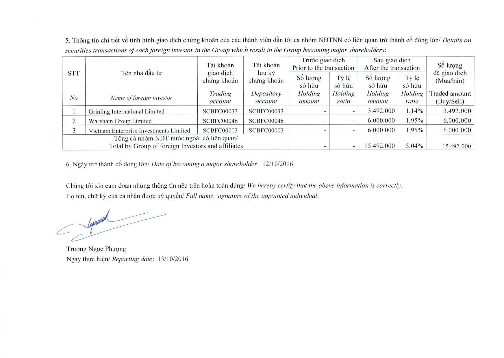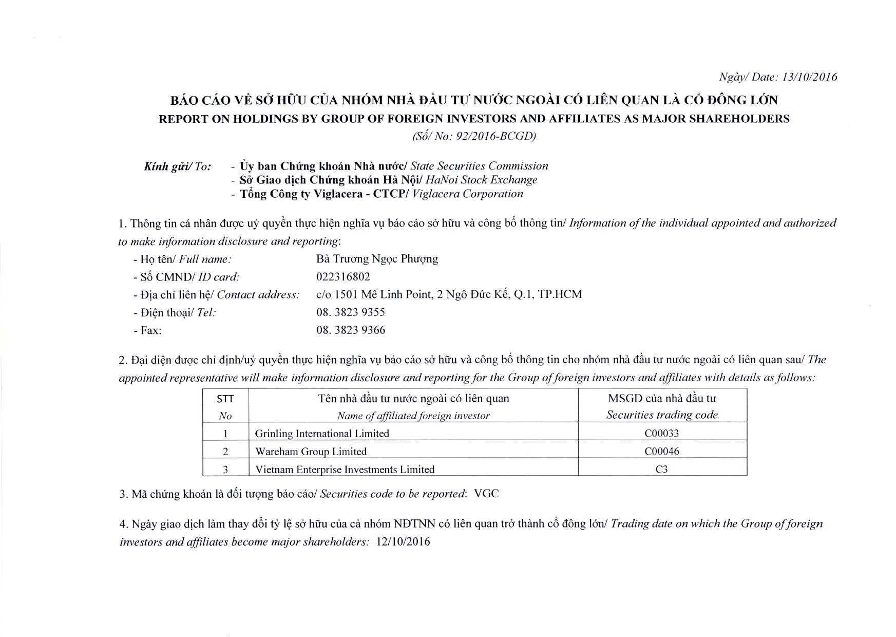 Báo cáo về sở hữu của nhóm nhà đầu tư nước ngoài có liên quan là cổ đông lớn