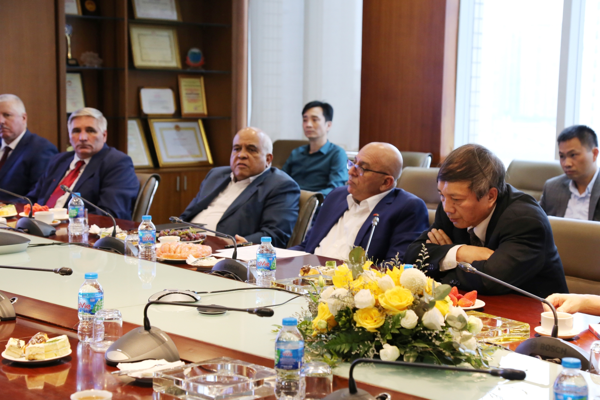 On March 28, 2022, Mr. René Mesa Villafana Cuban Minister of Construction, Mr. Orlando Nicolás Hernández Guillén Cuban Ambassador Extraordinary and Plenipotentiary to Vietnam visited and worked at Viglacera Corporation. Welcoming the delegation were Mr. Nguyen Anh Tuan - General Director of Viglacera Corporation together with leaders, directors of member units, experts preparing to work at Viglacera's projects located in Cuba during the next period.