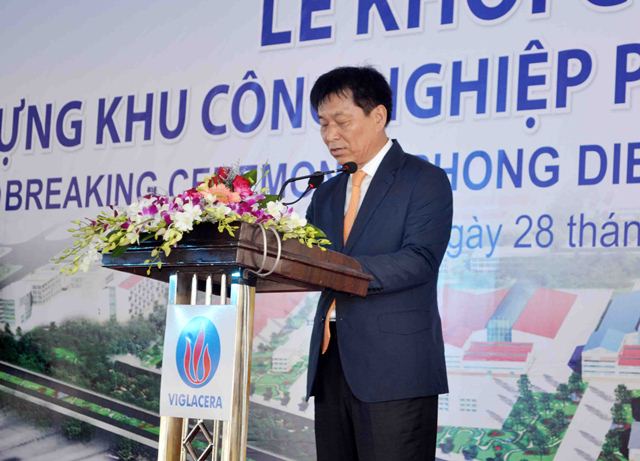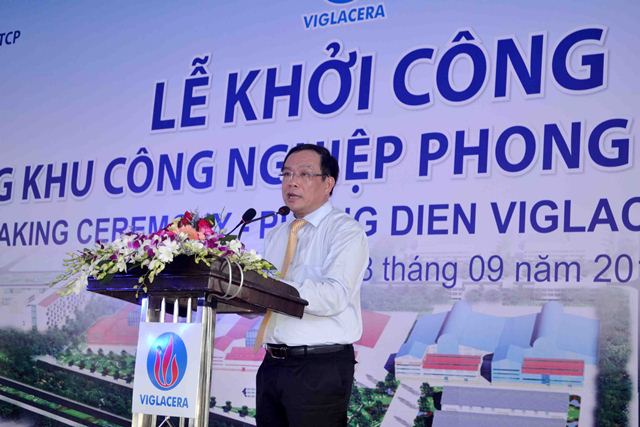 Speaking at the ceremony, Deputy Secretary of Party Committee - Chairman Nguyen Van Cao recognized and appreciated the efforts of Viglacera Corporation – JSC in construction project investment in Phong Dien Industrial Zone. The investment of the Corporation will create a breakthrough in attracting investment and promote Hue’s industrial zone’s growth in the next period. Thua Thien Hue Province committed to create favorable conditions for investors to implement the project on schedule.