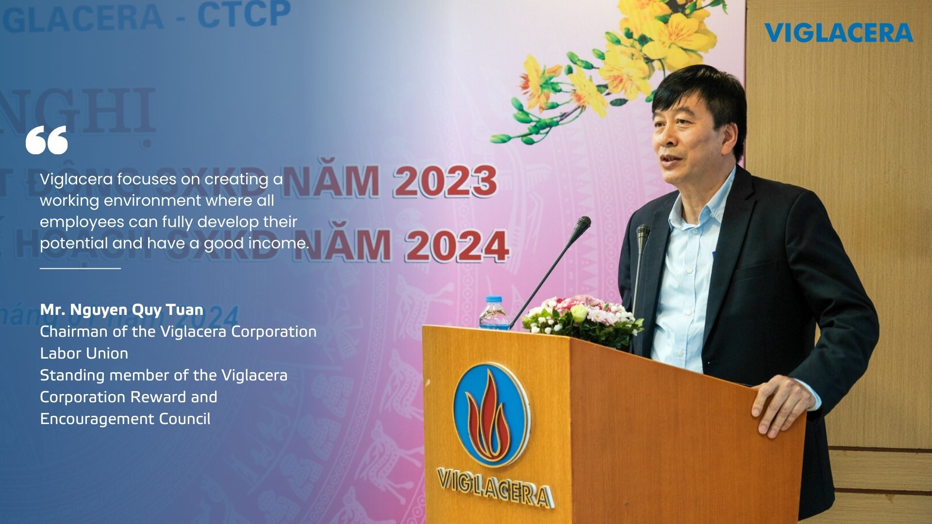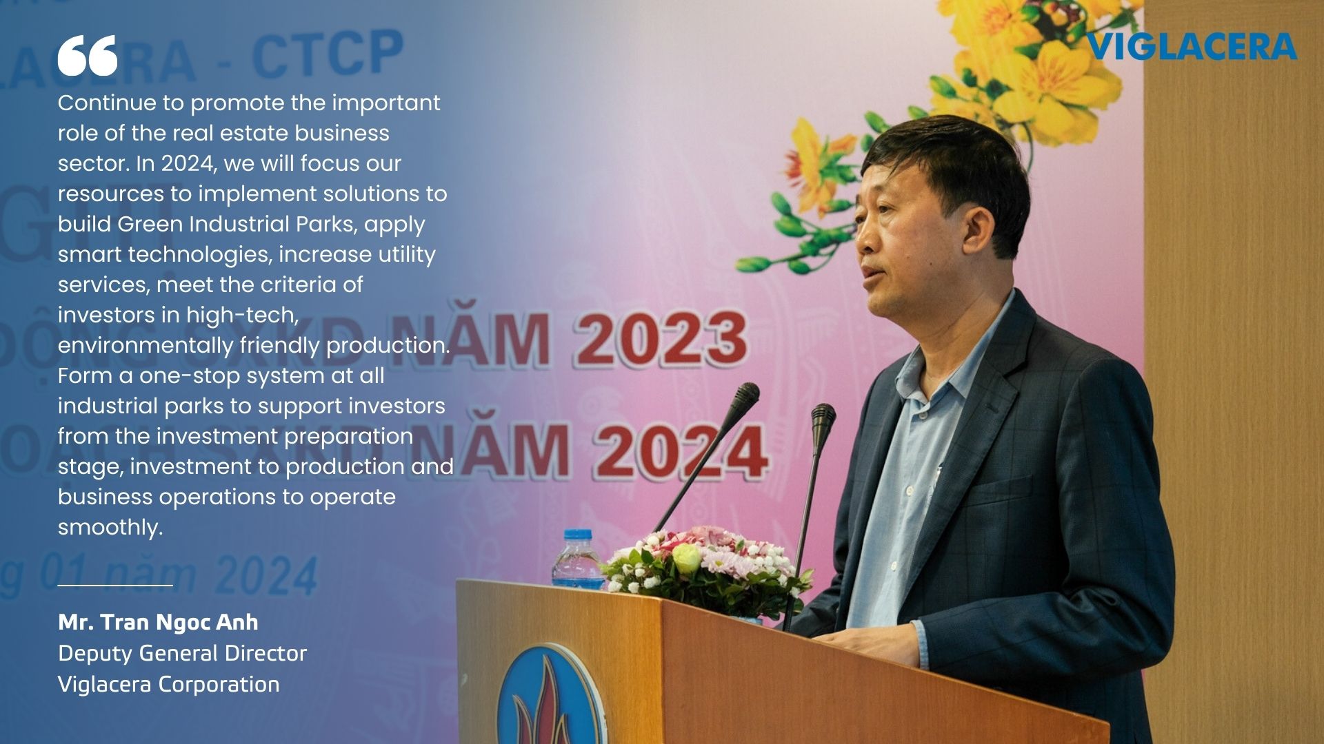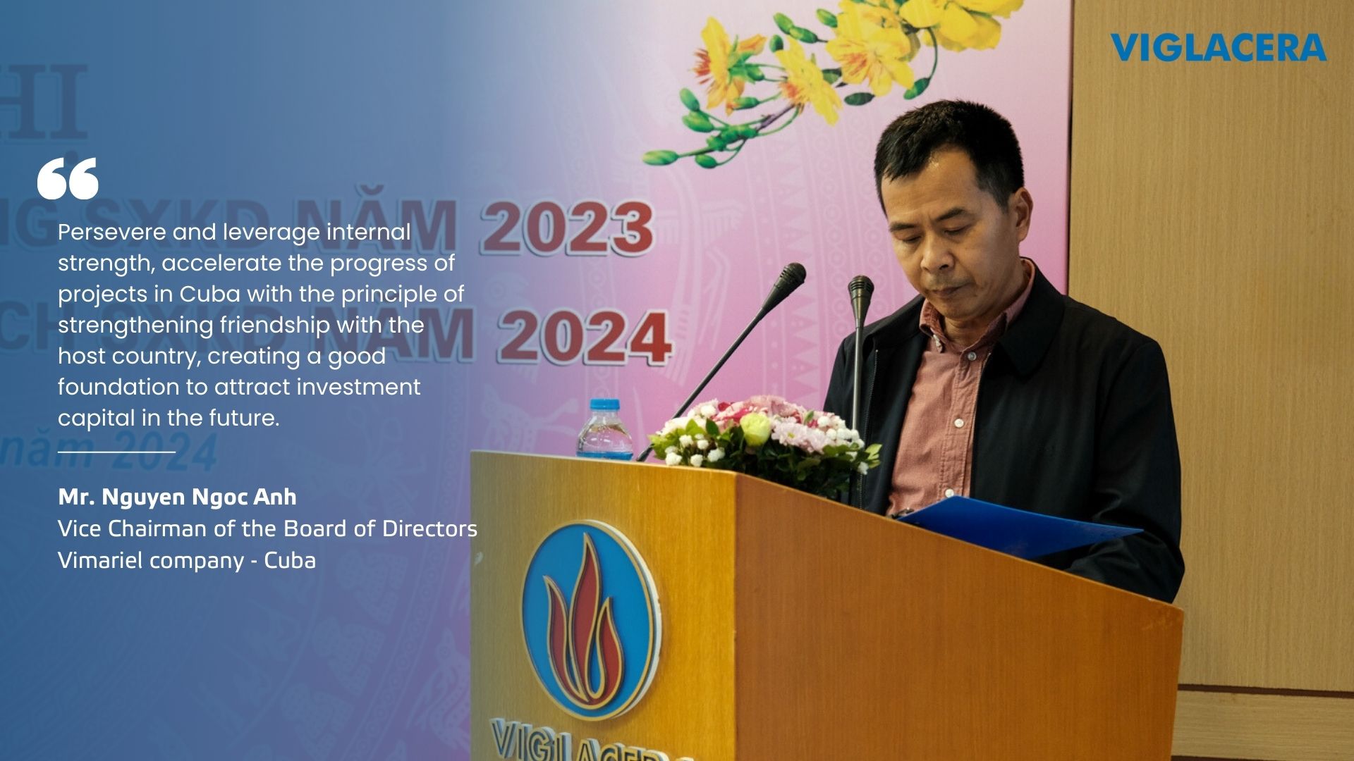 Mr. Nguyen Anh Tuan, Deputy General Director of Viglacera Corporation, presented a report on the summary of work in 2023 and the implementation of the production and business plan for 2024
